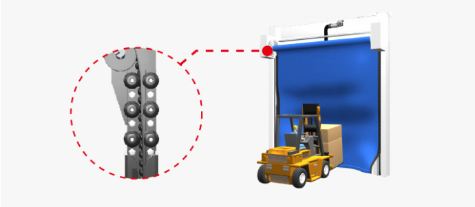 2.采用拉鏈將織物與側框?qū)к壵w連接起來,實現(xiàn)更好的密封性能和氣密性。當發(fā)生事故碰撞時,織物可以從導軌上走出來,然后自動返回。這減少了日常維護。