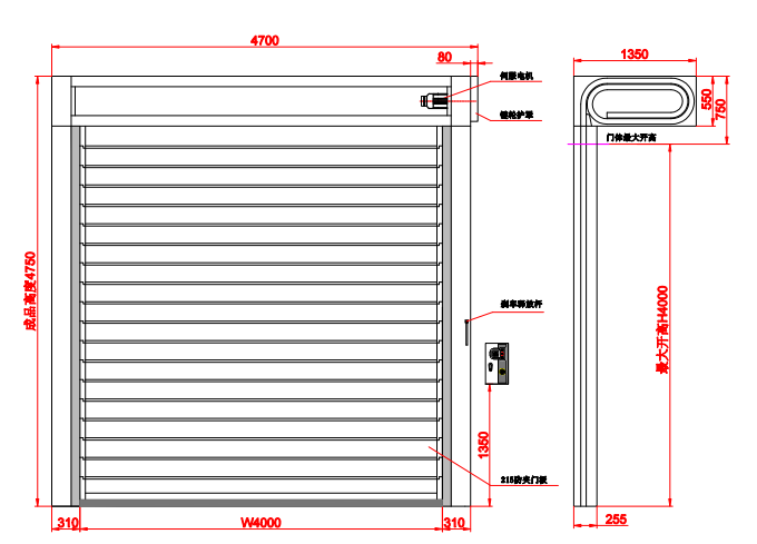 硬質(zhì)快速門整體外觀;采用寶鋼鍍鋅板經(jīng)激光切割、數(shù)控折彎而成的成型的渦輪系統(tǒng)、導(dǎo)軌系統(tǒng)、防護(hù)外罩,長久不生銹,外部美觀、防塵、輕松清潔傳動(dòng)系統(tǒng);一體式的傳動(dòng)系統(tǒng),使得門體兩側(cè)均勻受力,整體運(yùn)行通暢。