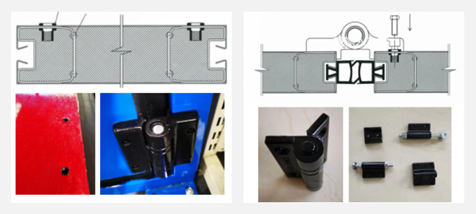 A.門板與鉸鏈之間的連接采用嵌入式鉚釘螺母的設(shè)計,門體上的連接硬件均采用嵌入式鉚釘螺母。這種設(shè)計增加了使用的耐用性,并防止了螺釘?shù)乃蓜?。鍍鋅防盜螺釘