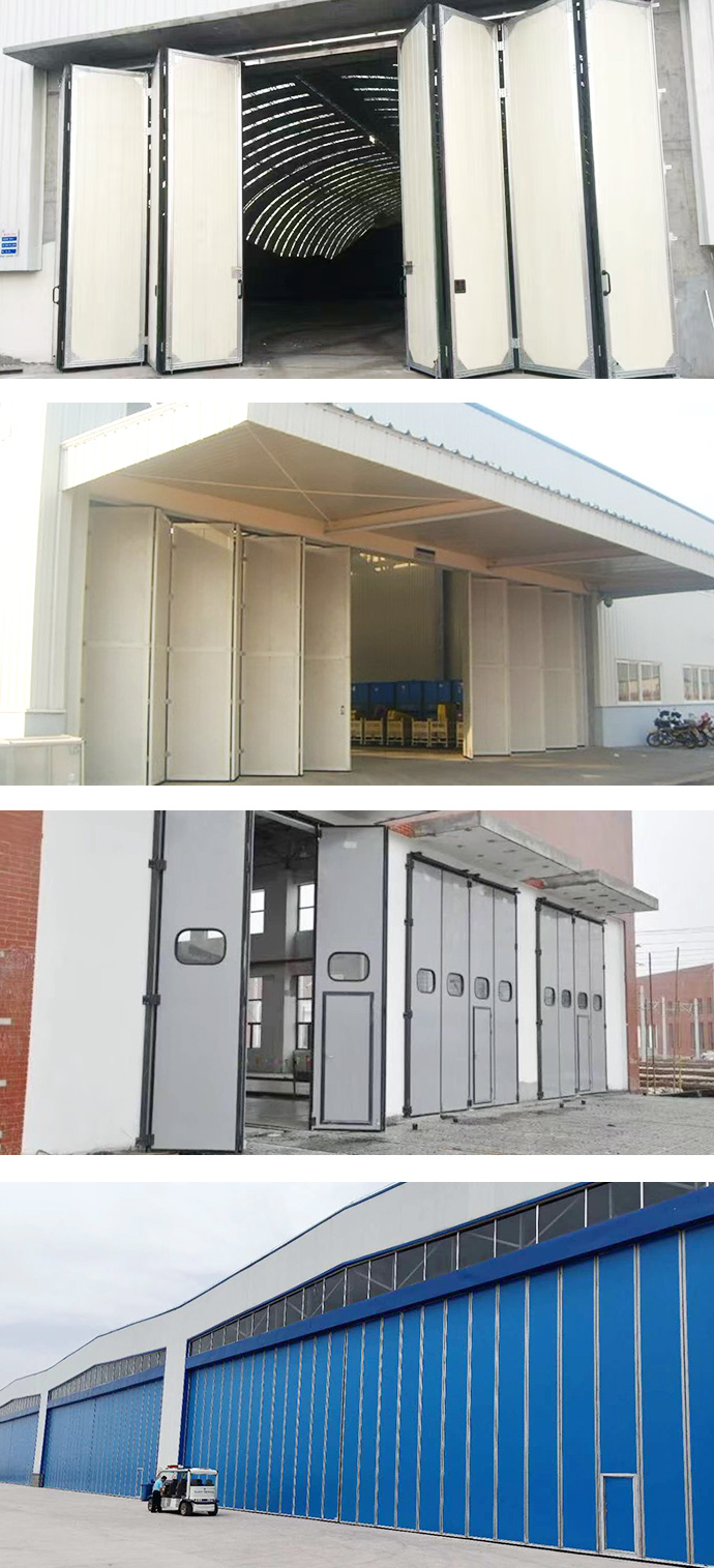 工業(yè)折疊門主要由門框、門扇、定向裝置、傳動桿、傳動部件、轉(zhuǎn)臂部件等部件組成。根據(jù)使用場合的不同,工業(yè)折疊門不僅可以裝在室內(nèi),還可以安裝在室外,靈活性強。